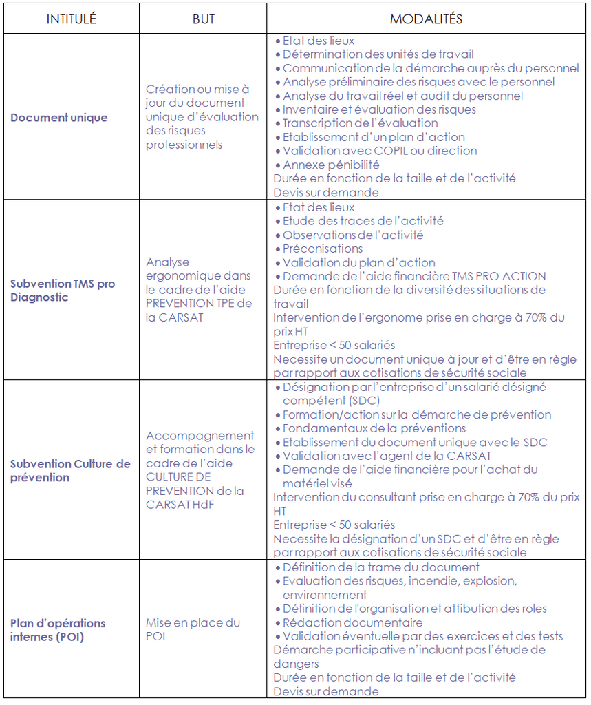 Prévention des risques professionnels Amélioration des Conditions de Travail